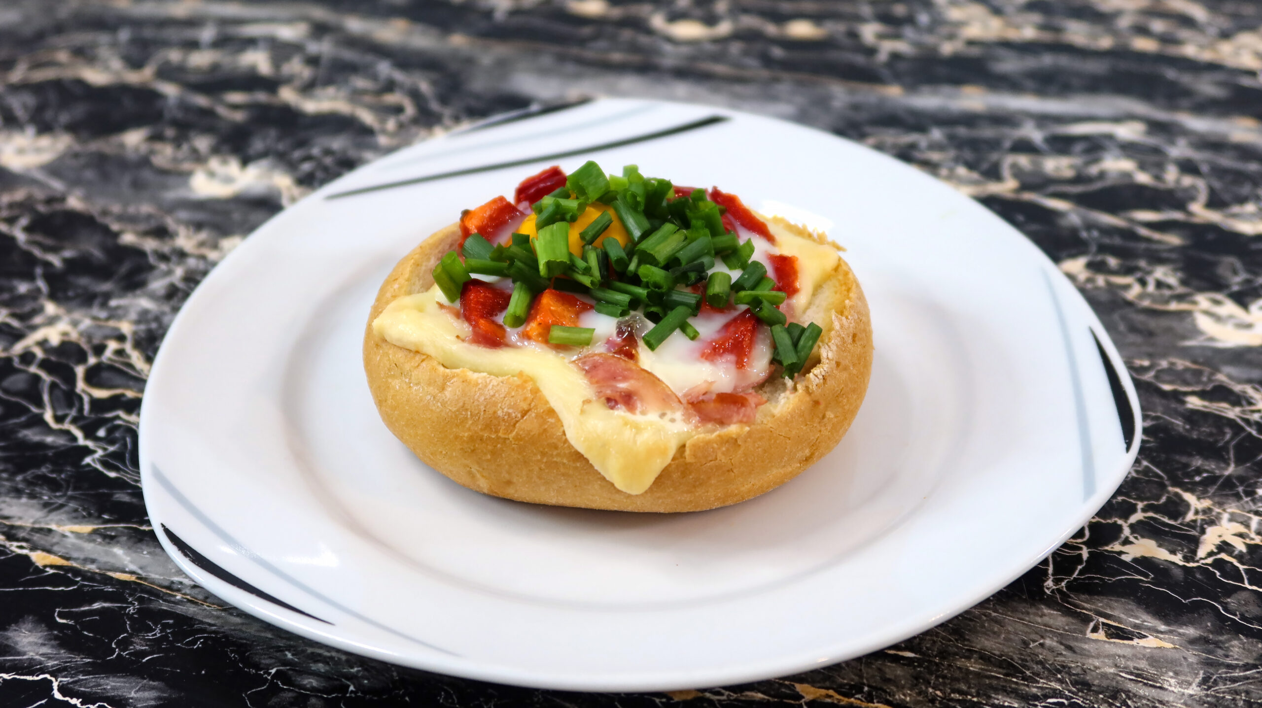 Bułki zapiekane z jajkiem, serem, wędliną i papryką – idealne śniadanie dla całej rodziny