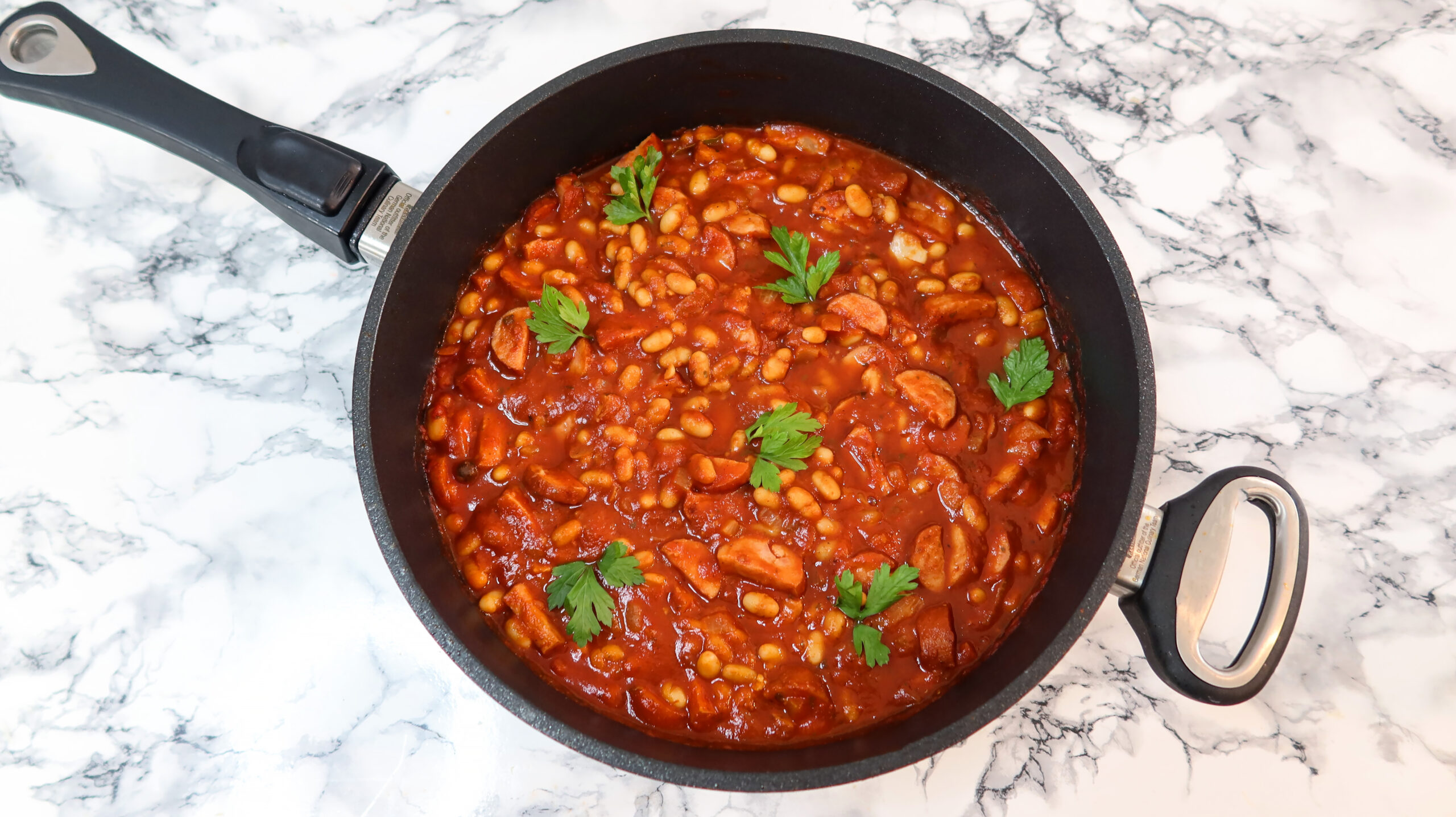 Szybkie, proste i sycące dania jednogarnkowe to idealne rozwiązanie na codzienny obiad. Ta aromatyczna fasolka z kiełbasą łączy w sobie delikatną białą fasolę, podsmażoną kiełbasę i intensywny pomidorowy sos.