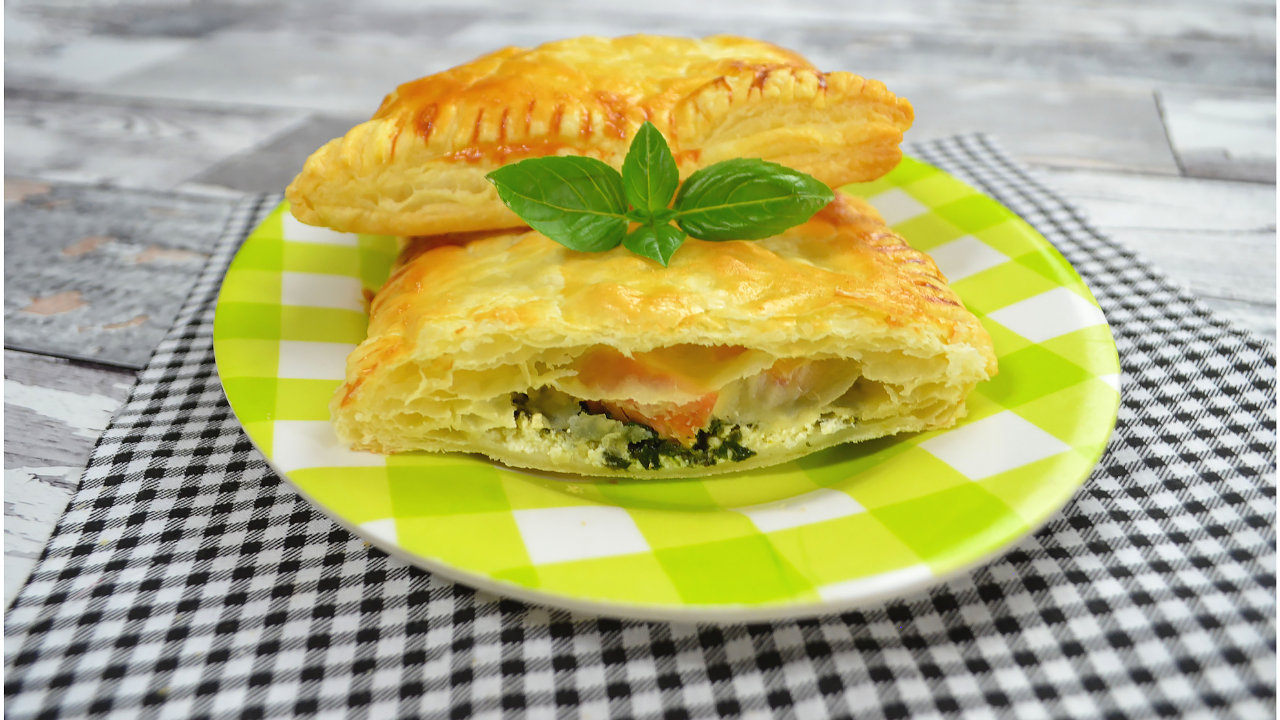 Paszteciki z ciasta francuskiego z serkiem, szpinakiem i łososiem – pyszna przekąska
