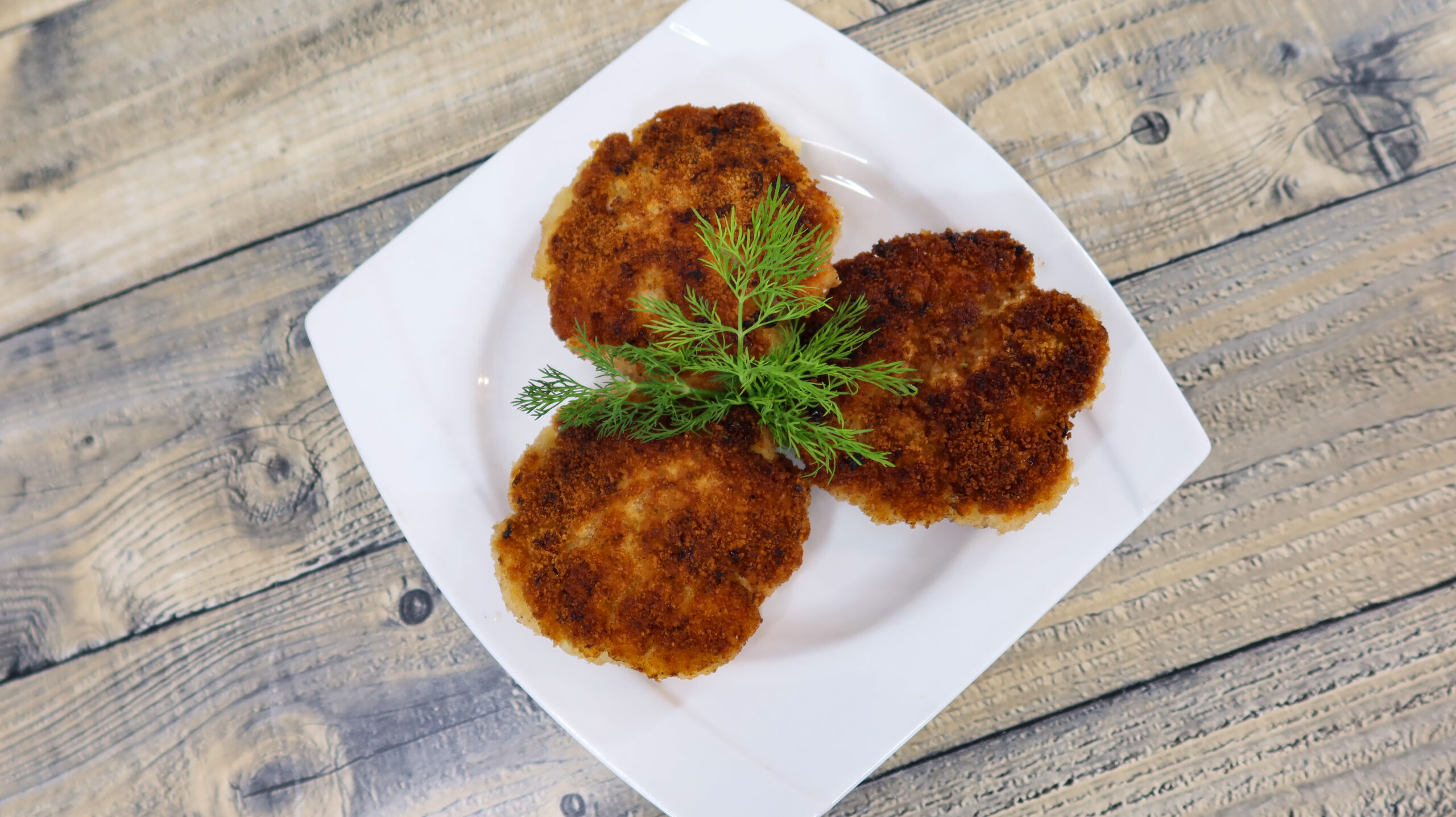 Kotlety smażymy na patelni z rozgrzanym tłuszczem z obu stron na złoto-brązowy kolor, a po usmażeniu zdejmujemy z patelni i odsączamy z nadmiaru tłuszczu na papierowym ręczniku.